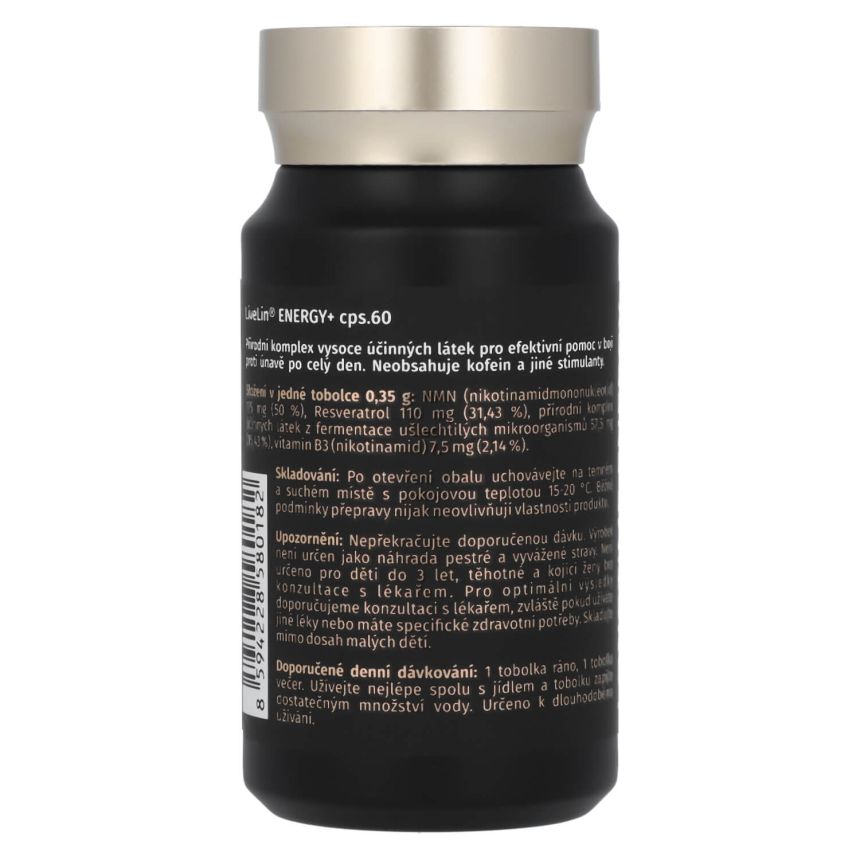 LiveLin® Energy+ je navržen jako komplex vysoce účinných látek s vysokou vstřebatelností a synergickým efektem jednotlivých složek. Při dlouhodobém pravidelném užívání poskytuje stabilní zdroj energie po celý aktivní den. Působí jako podpora energetických biochemických procesů, které udržují energii a snižují únavu. Na rozdíl od podobných produktů neobsahuje kofein ani jiné stimulanty, a proto nezpůsobuje výkyvy energie, nálad, podráždění trávícího traktu ani další negativní vedlejší účinky, jako jsou nervozita, bušení srdce, rychlé kolísání glykemie apod.