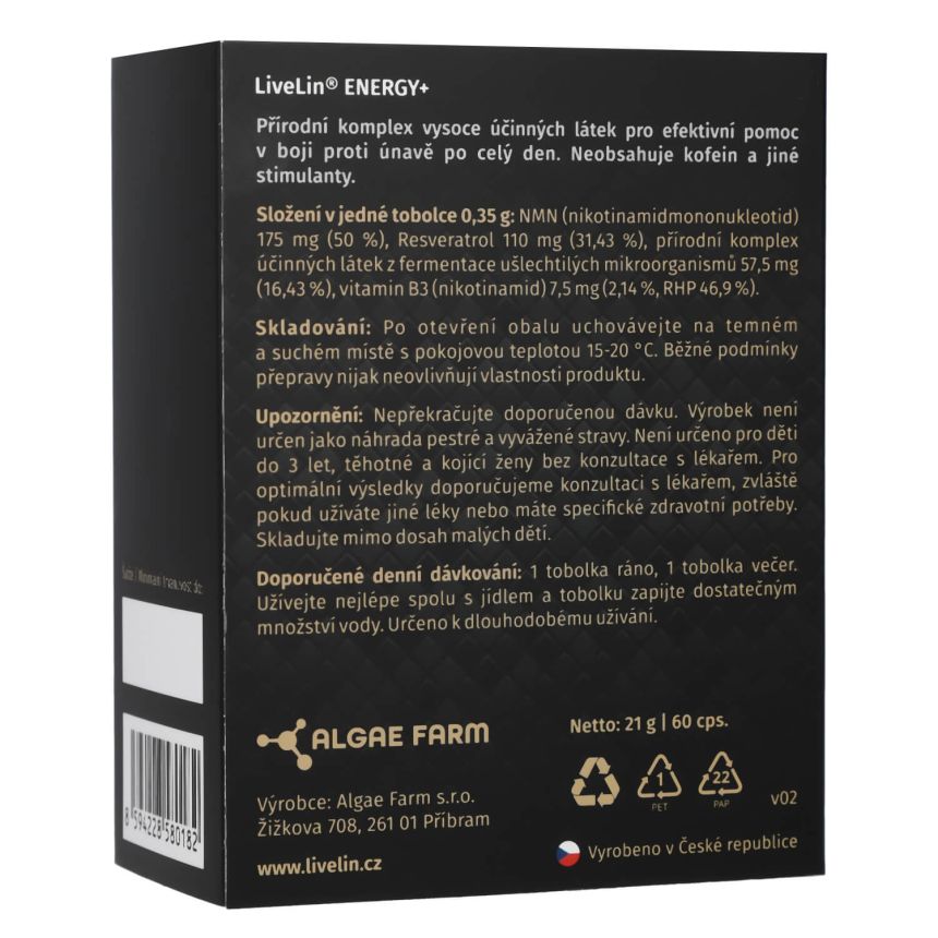 Doplněk stravy LiveLin® Energy+ je čistě přírodní komplex účinných látek podporujících správnou činnost nervového systému, kognitivních funkcí mozku a energetického metabolismu.