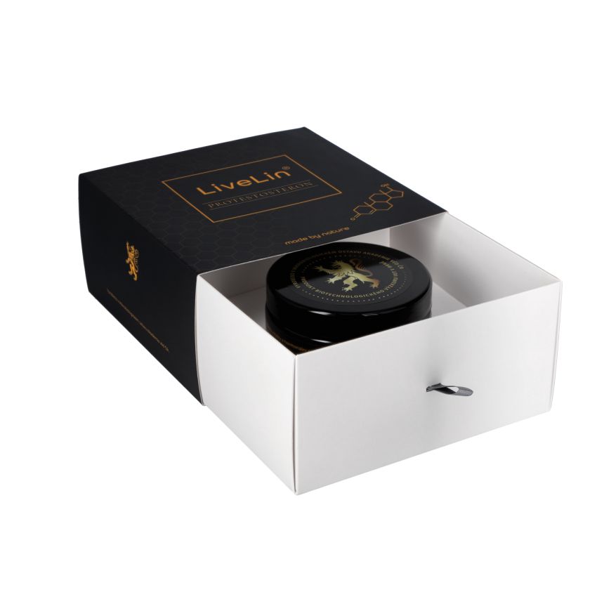 Doplněk stravy LiveLin® ProTestosteron je čistě přírodní směs lyofilizovaného extraktu z trubčích larev včely medonosné (v ranné fázi vývoje larvy) a mikronizované biomasy, vyrobené biotechnologickým fermentačním procesem, při němž se využívají ušlechtilé kvasinky k produkci účinných látek nezbytných pro dlouhověkost a trvalé zdraví. Směs je uložena v medové emulzi pro dokonalou ochranu před biodegradací účinných látek. Produkt neobsahuje žádné přídatné látky, barviva, ochucovadla ani stabilizátory.